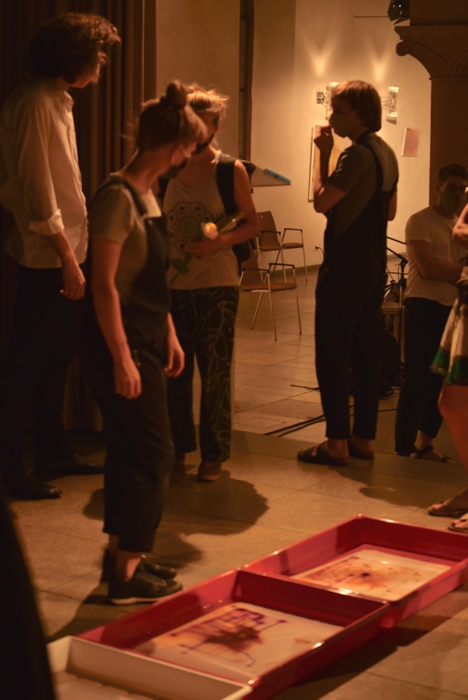 Mit einer Weiterentwicklung seiner Kamera Obscura, mit der er nun Bewegungs- und Tanzsequenzen einzelner oder mehrerer, von Live-Musik begleiteter Tänzer*innen einfangen will, inszeniert Paul Pape einen performativen Abend. Die Bewegungen der Tänzer*innen werden auf ein Lichtpendel in einer Camera Obscura übertragen, so dass das eigentliche Bild in einer weiteren Ebene mit überlagernden Lichtzeichnungen der gleichen Bewegung ergänzt wird. Pape beabsichtigt somit eine erfrischend unerwartete Verbindung von Happening, Tanz, Musik und Fotografie. Die „Tanzkamera Obscura“ war zu erleben am 31.Juli 2020 in der Englischen Kirche in Bad Homburg. An diesem Abend arbeiteten 14 Künstler*innen interdisziplinär: